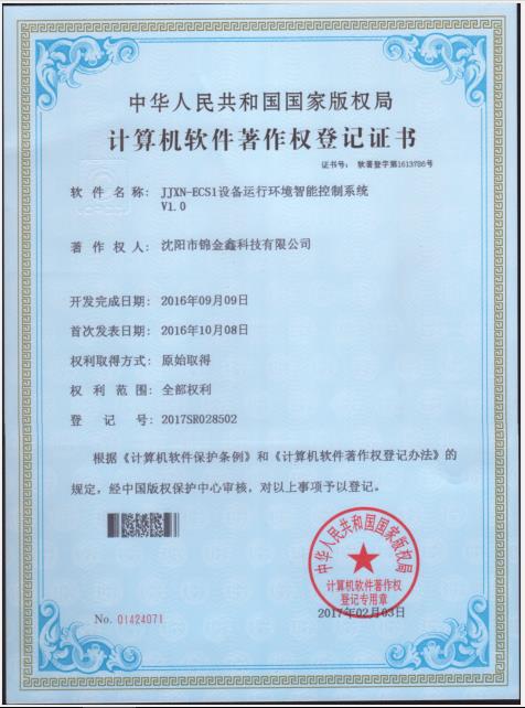 軟件著作權-JJXN-ECS1設備運行環(huán)境智能控制系統(tǒng)V1.0